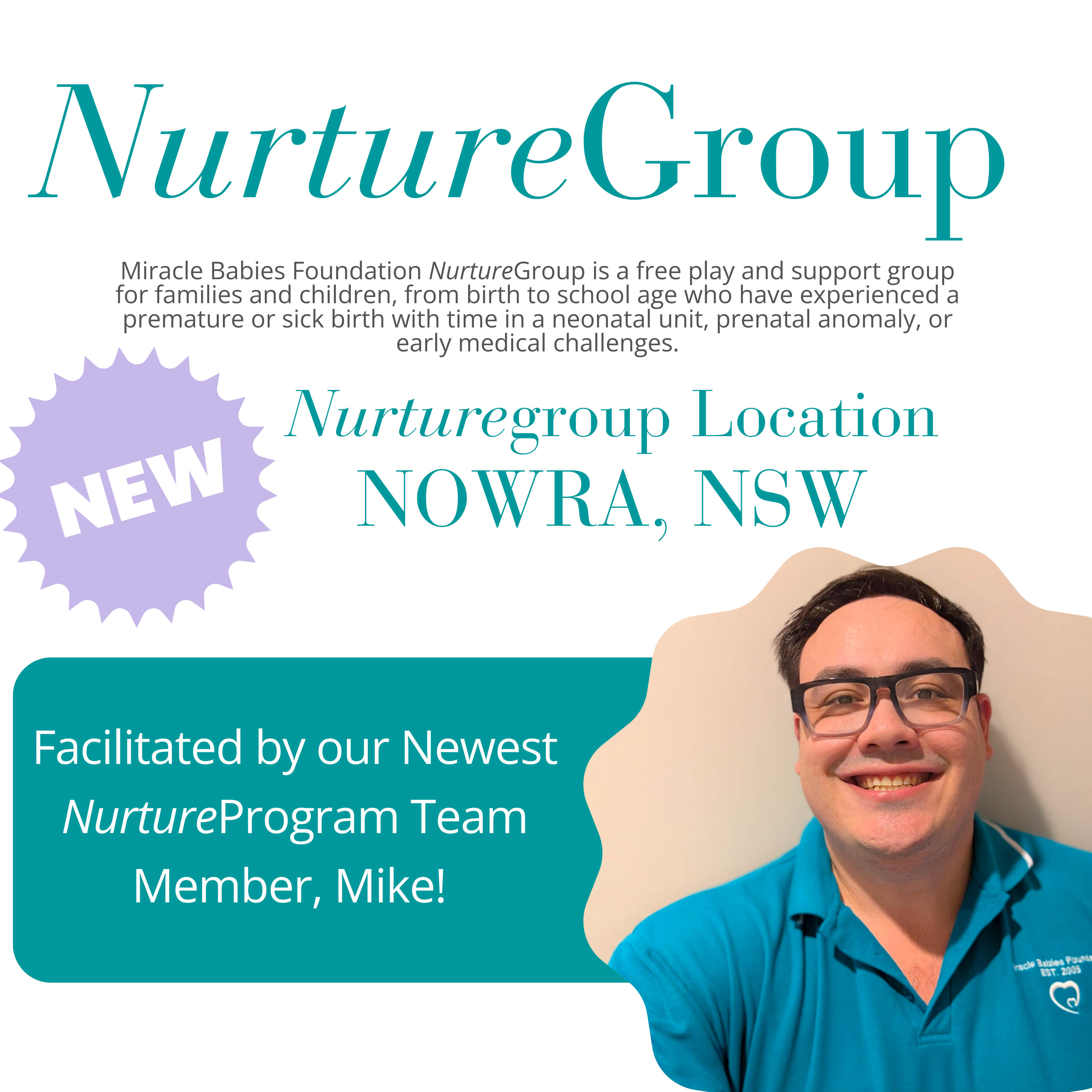 Our first Nowra NurtureGroup session will be on the 21 March 2026, facilitated by our newest team member Mike, a miracle dad who has experienced the neonatal journey firsthand. This will be the first NurtureGroup faciliated by a miracle dad, bringing a powerful perspective of support for families.