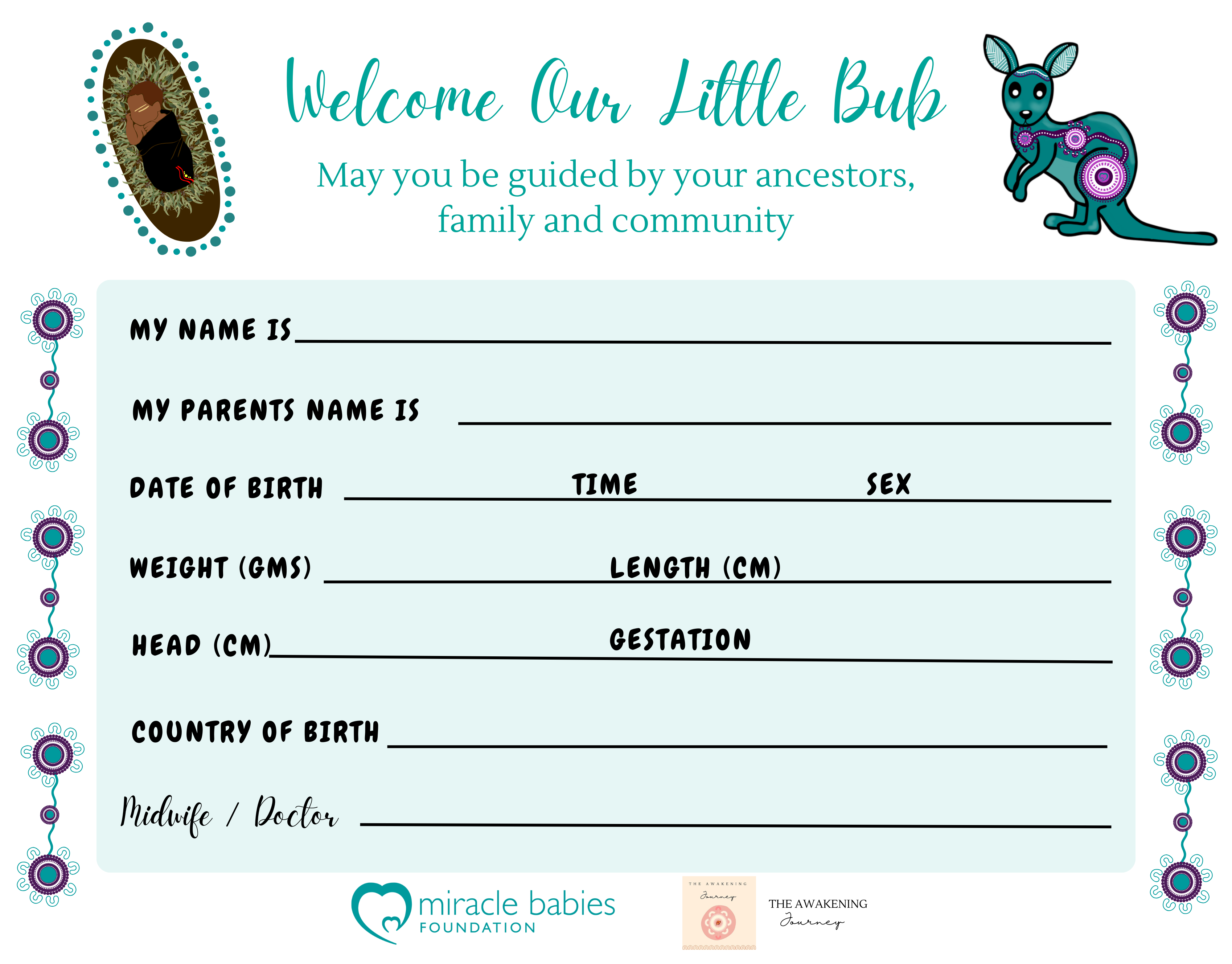 In acknowledgement and to pay our respects to First Nations families in Australia, Miracle Babies is proud to have partnered with The Awakening Journey to bring hospitals a carefully designed Cot Card.