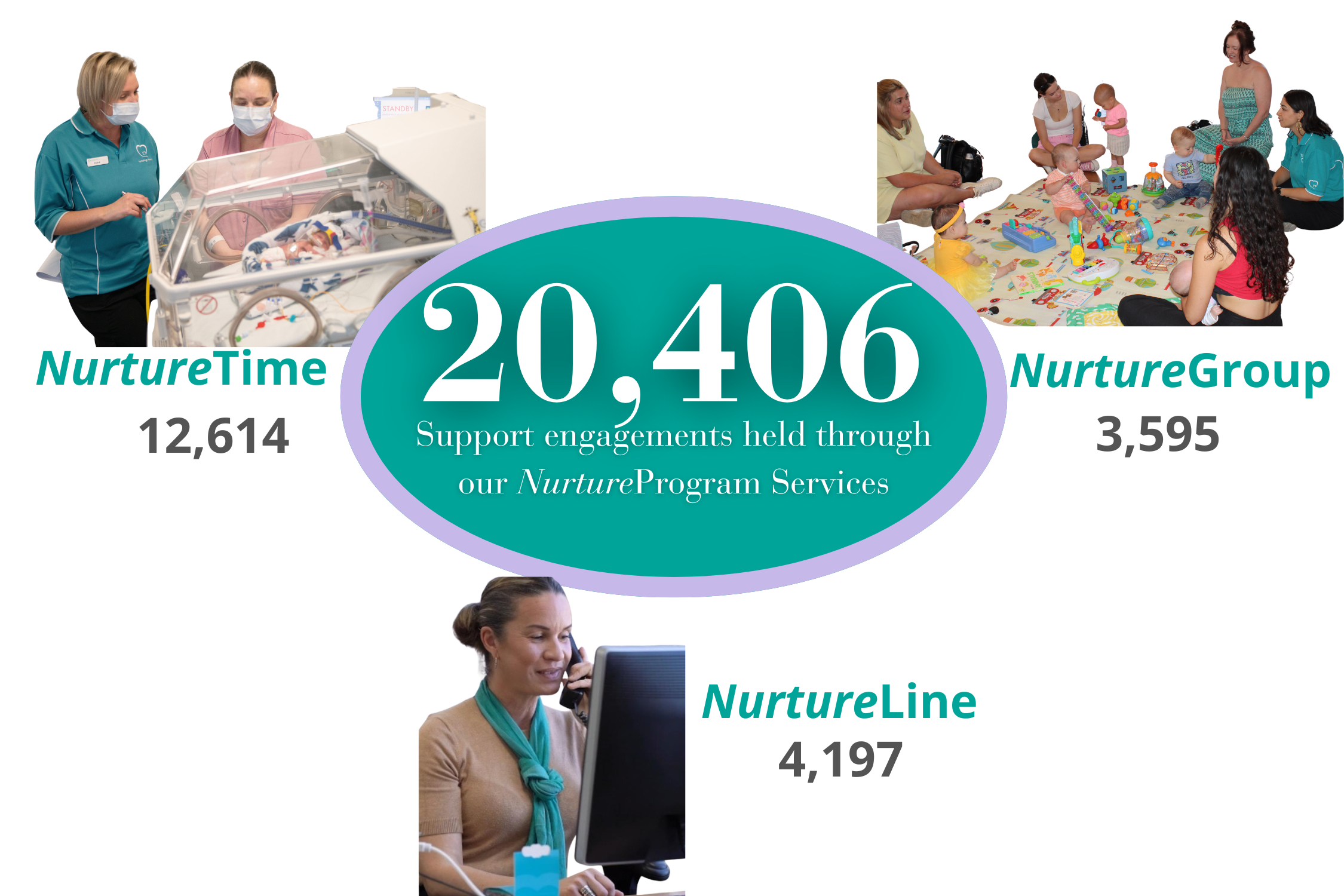 We keep our community informed all year about our reach and impact of our services and resources and while we saw our NurtureProgram was growing quickly in 2025 we are proud to have our final Board reports of over 35,000 support engagements over the year. This is due mainly to increased hours in our cotside hospital support which has built stronger relationships with our team and hospital staff and families. There has been an increase in calls to our support line, families attending NurtureGroup after hospital discharge and more resources for families at pivotal times in the neonatal unit. Every support engagement is a pivotal impact in a family’s journey, from hospital to community and beyond. We are so proud and heart full that our commitment has helped so many families. Thank you to each and every one of you who help us to deliver on our purpose. - Kylie Pussell, CEO and CoFounder of Miracle Babies.