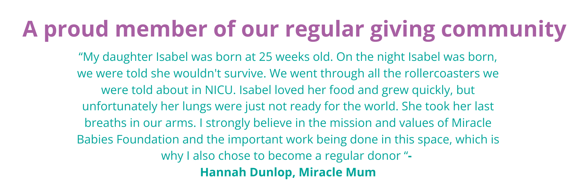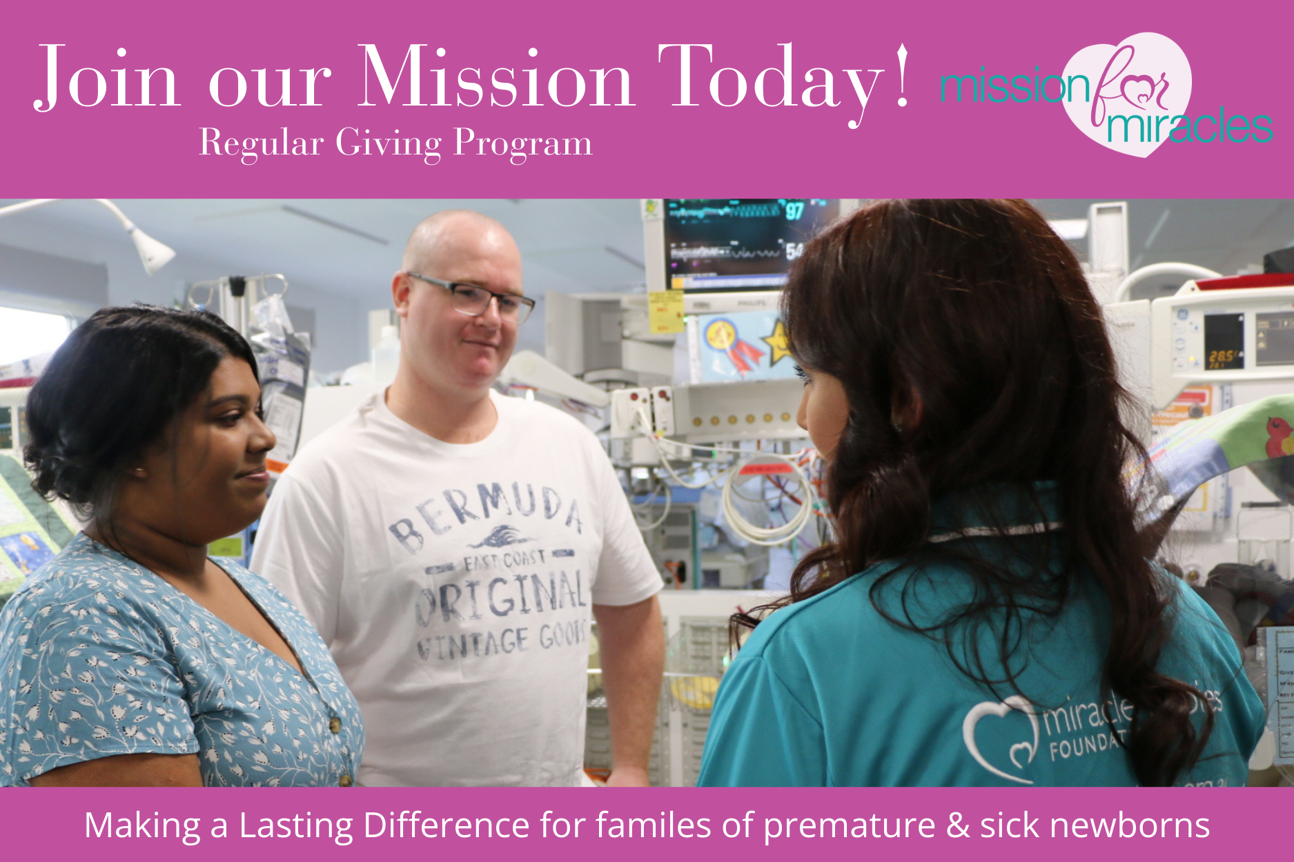 Mission for Miracles is our Regular Giving Program that helps to improve, support and enhance all lives impacted by a premature or sick birth.